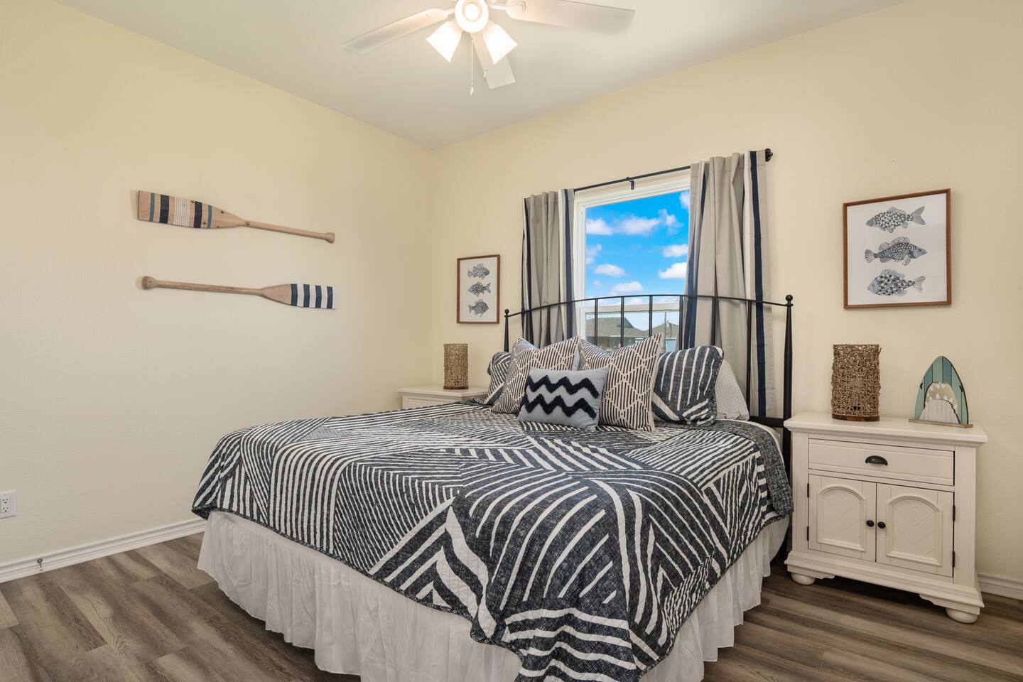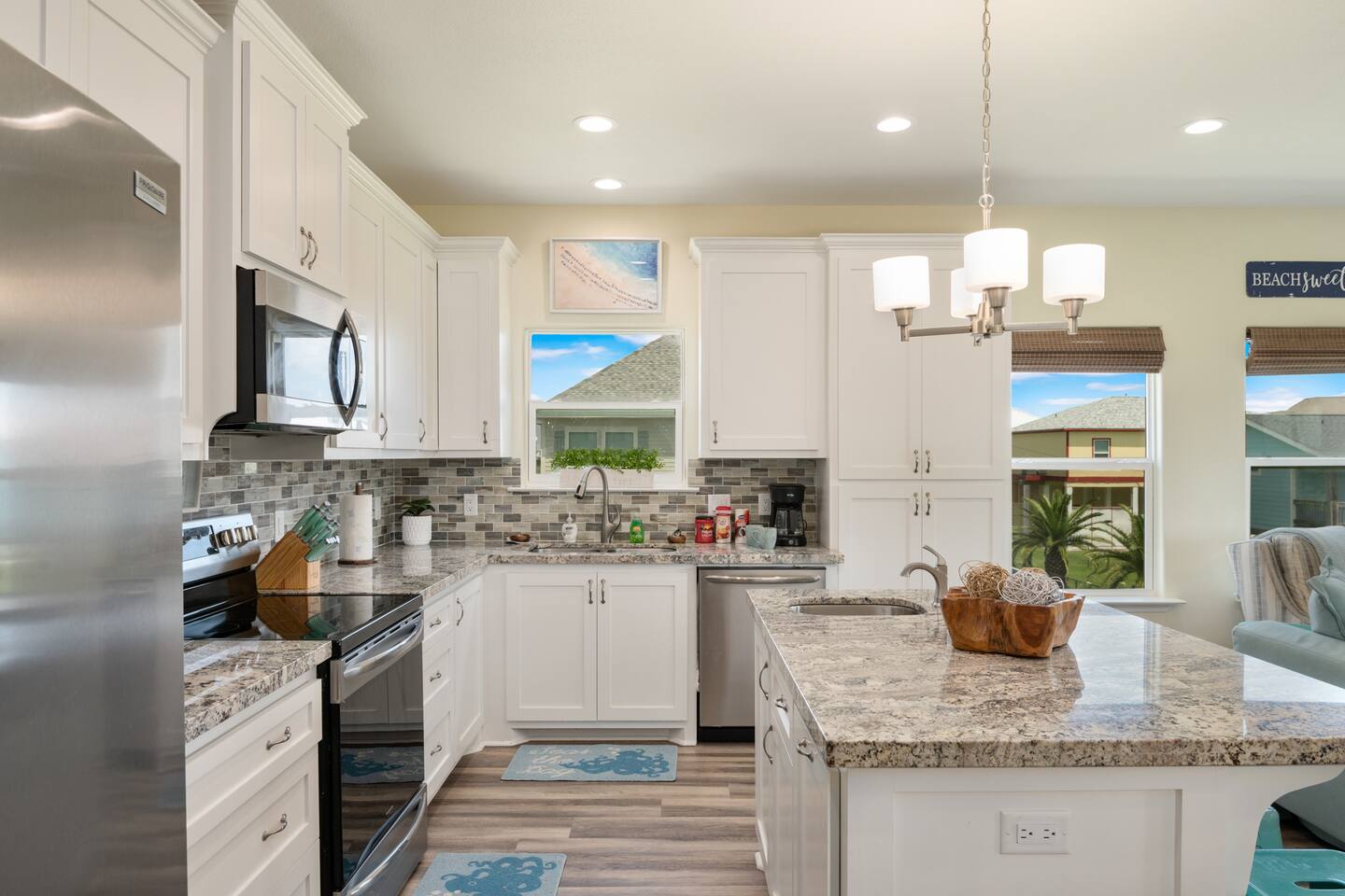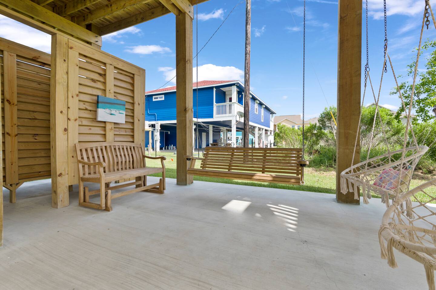 “Sweet Summertime” is a newly built (June 2021) 3/2 beachside bungalow in the Lafitte’s Landing subdivision in Crystal Beach. Private community beach access is a quick 5 minute walk from the house. Bring your golf cart or rent one and use the cart path to drive right onto the beach! 3 king bedrooms make this home perfect for 3 couples or 1-2 families. Great outdoor space for entertaining with a hot tub, lots of seating, grill, fish cleaning station and an outdoor shower!