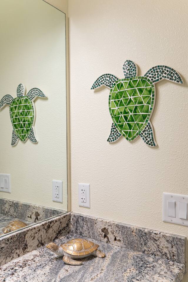 Private community beach access is a short walk or golf cart ride away. There’s plenty of golf cart rental places, but if you plan on bringing your own, make sure you get a beach parking pass!